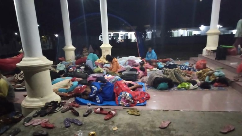 Penduduk warga yang mengungsi tampak tidur di teras rumah. Ada pula yang tidur di tenda beralas tikar. Bandar Bola Terpercaya