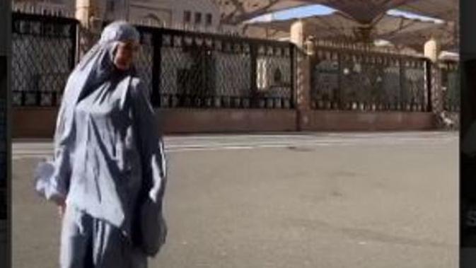 Berselang beberapa jam kemudian, Luna Maya memperlihatkan pose dirinya dengan feature boomerang. Mantan Reino Barack itu berjalan di halaman Masjid Nabawi dengan mengenakan mukena.